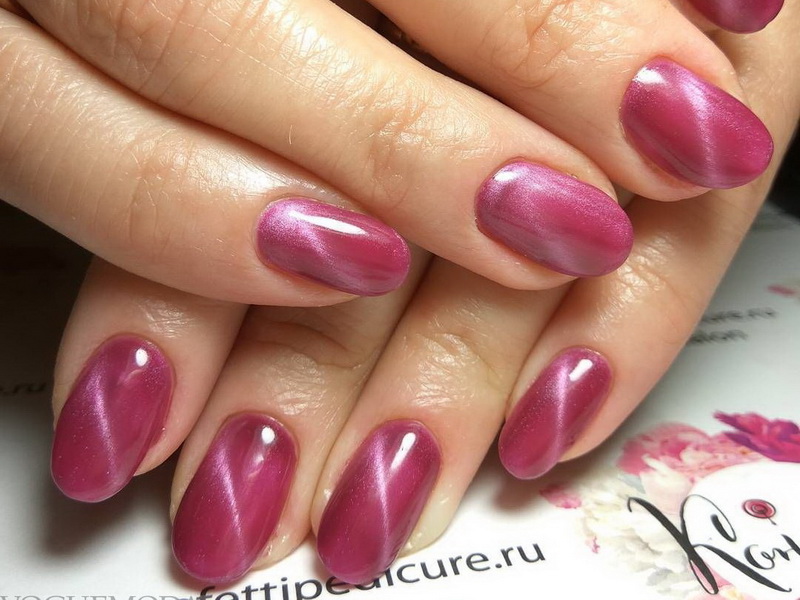 Other variants of pigments have their own nuances. For example, temperature variations change shade. In the cold they darken and become lighter in warmth. Chameleon analogs change shade, adapting to different lighting, becoming warmer or cooler. Magnetic, or the so-called cat's eye, today are more interesting and voluminous, with their help you can create a stylish and spectacular manicure.