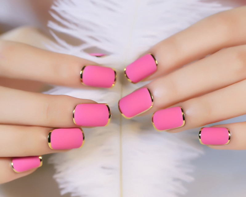- Use the outline contour as a decoration intake. Even if you circle the pink nail with black and paint a highlight on the side of each nail, you will get a creative design that has no analogues.