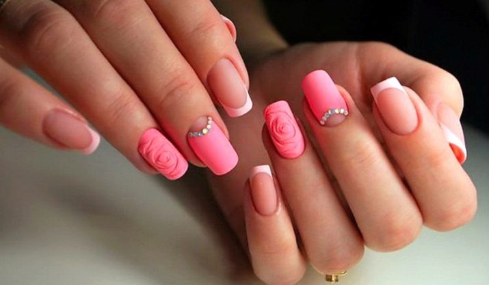 To make the image harmonious, you need to take into account the combination of the chosen color of manicure and clothing. It should be understood that glut pink onions is unacceptable, and therefore pink + pink combinations are undesirable in this case. From this style becomes childish and ill-conceived, which is highly undesirable. In general, pink manicure is a choice of sensual and passionate natures that are prone to inconstancy.