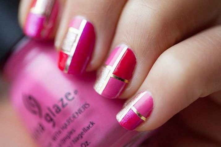 - Foil tape must be used properly for decoration. It is undesirable to draw out all the nails of the hands with them: four out of ten fingers and literally two strips per design, whether parallel or intersecting straight, are enough.