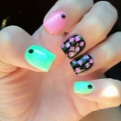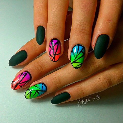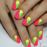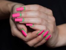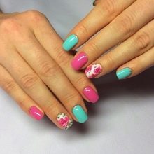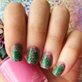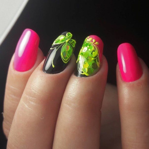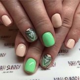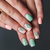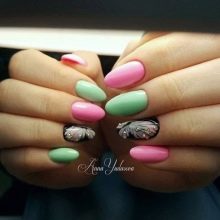 There are a lot of ideas, because now there is no lack of funds for creativity, so you should just dare and make yourself a bright manicure in green and pink tones.