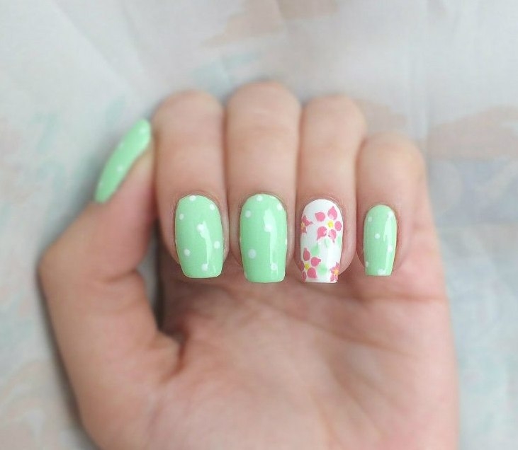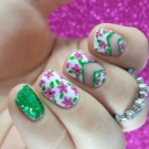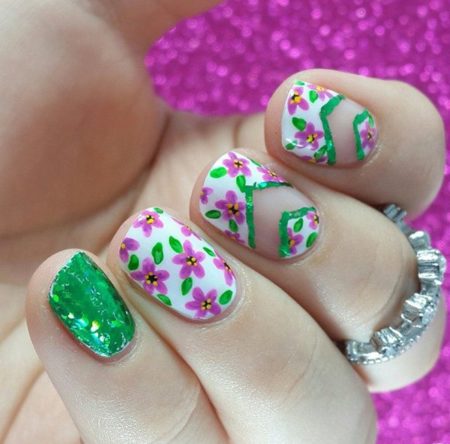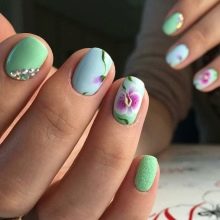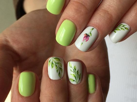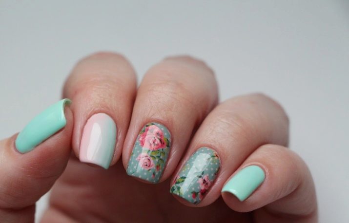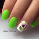 The colors themselves clearly contribute to using them to make floristic scenes on the nails. And what will be depicted with the help of pink and green depends on the hostess's fantasy. Although something can be recommended.