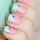 - French manicure in pink and green tones. The classic technique, made in an unusual color, looks very interesting.