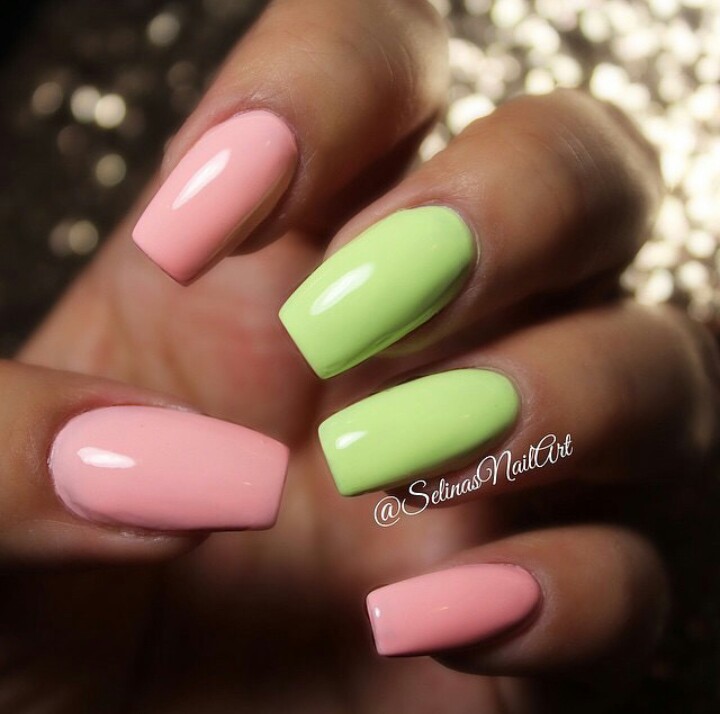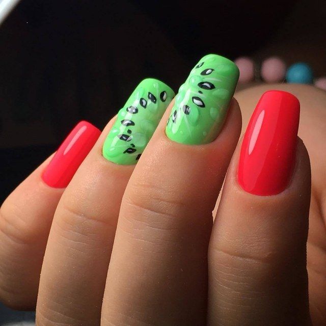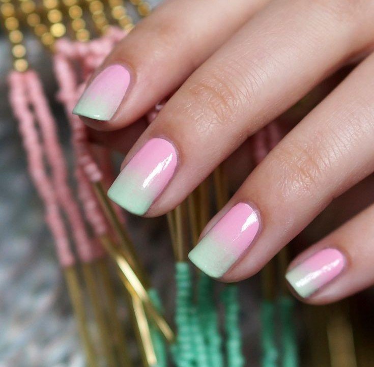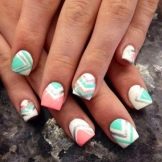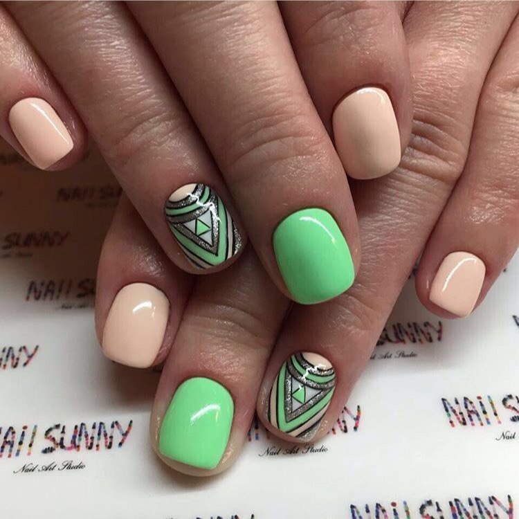 Natural colors have always been and will be relevant in any season. In manicure, you can safely use almost any combination of colors, as long as they fit into the image. Pink and green contrasts well and looks very juicy and interesting.