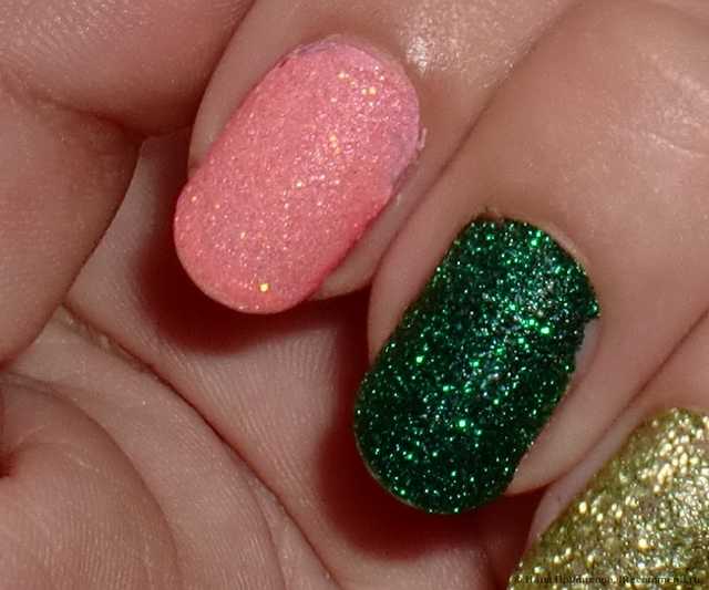 - Sahara Desert or sand rubbed. Now at the peak of fashion, the effect of "roughness" of nails, carried out with the help of special relief varnishes. This surface is also desirable to combine with the usual gloss. For example, dark green sand lacquer on several nails, and the rest - bright pink.