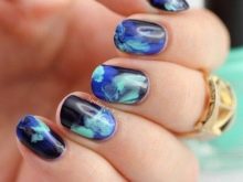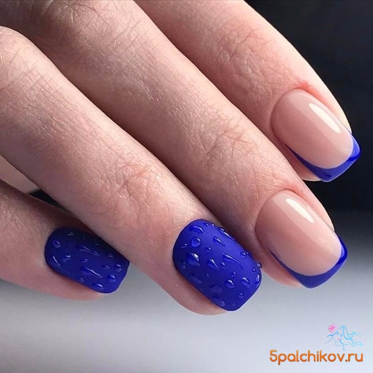 Beautifully can look on accent nails top, imitating raindrops. You can decorate accent nails with water technique using blue, black and white contrasts. And also harmonious will be the design of accent nails with a stamping, silver camoufs, transparent or blue bouillons.