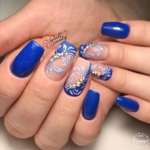 In an effort to diversify and bring something new and fresh, the fashion trends of the nail industry do not cease to amaze their fans with bright design ideas. Today, fashion looks focused on the blue jacket: this color is considered one of the best and noble. Having a different emotional coloring, he is able to emphasize the feminine and demonstrate a delicate taste.