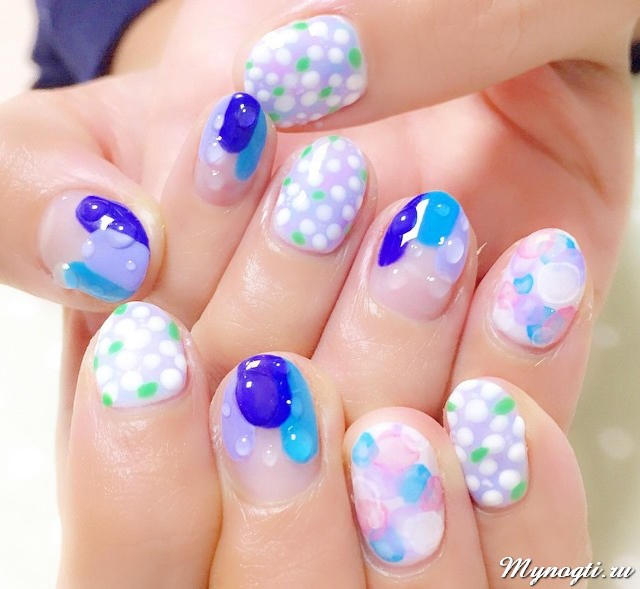 - it is impossible to use in the design at the same time a dotted pattern with gel-lacquer and a scattering of glittering decor;