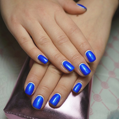 Turning to the question of the most relevant and spectacular variants today, it can be said with confidence: in the trend is unity of harmony, femininity and minimalism. According to the basic idea of Italian fashion, you need to drop all unnecessary - and you can see how it will ennoble the female image. French manicure with blue color can be decorated using different decor techniques. For example, the blue color is perfect for working with rubbing (special manicure powder with a fine fraction of particles).