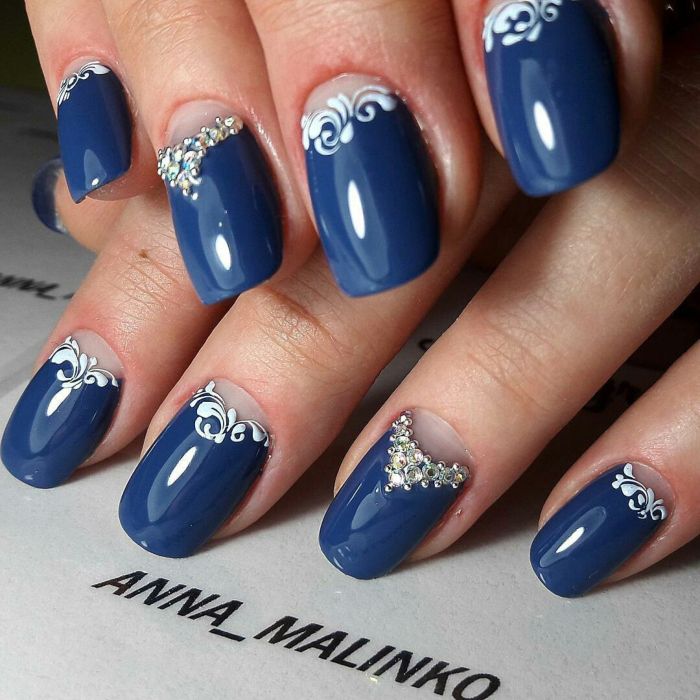 Some believe that blue lacquer does not suit girls with short nails at all, claiming that with such a design they do not look very attractive. But quite often short nails, decorated in a blue tone, look extremely interesting and feminine. It depends on the number of décor and designs. Do not use for the design of extremely intricate and intricate images.