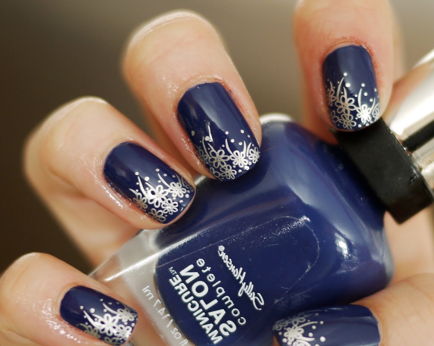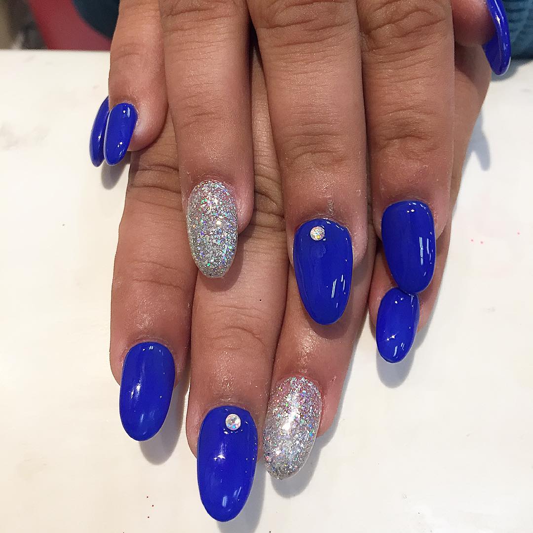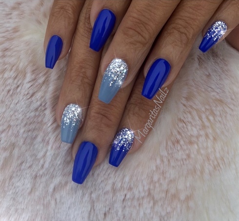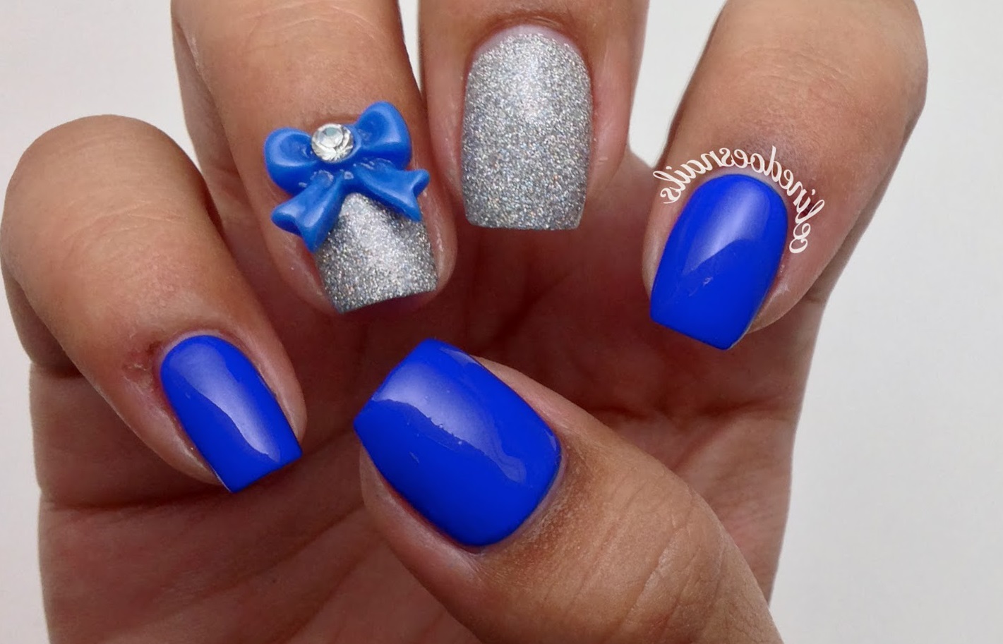 The blue color in all its manifestations (except the most pastel) is well combined with other colors - red, white, yellow, black. Silver and gold give luxury and sophistication to design with soloing shades of the sea and sky. In addition, rhinestones, kamifubuki, modeling and sand look great on blue.