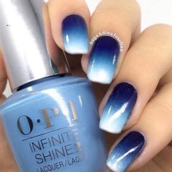 The only condition for these shades is not to take more than one or two shades for them as companions. Since blue is in itself a rather saturated color, a large number of accompanying shades can create ripples and fuss on nails, and this is not at all the effect that a lady wants when she comes to a manicure.