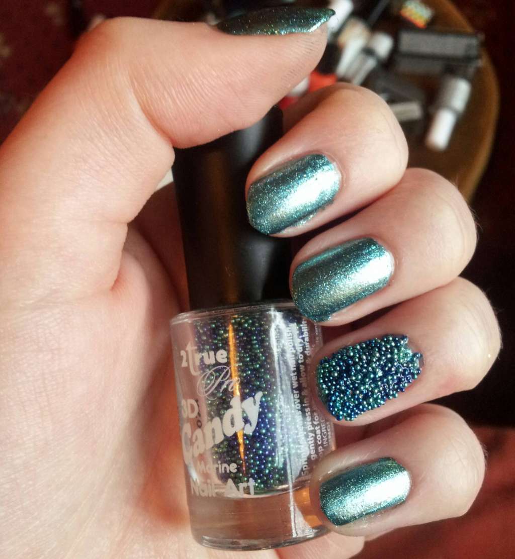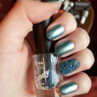 “Caviar” design, in which, as a rule, one nail is completely covered with small beads, “bouillons”, will look no less impressive in the proposed colors: a gray-silver king-nail, the rest are cornflower or ultramarine.
