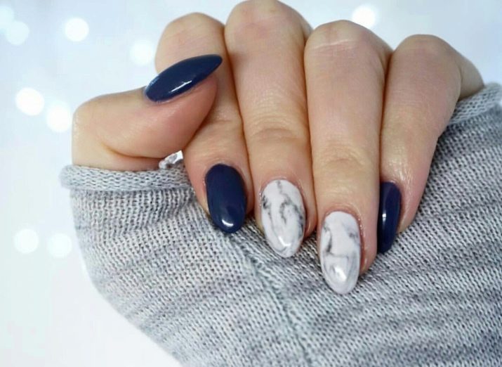 The marble, which has not lost its popularity this season on nails, is also beautiful in the proposed combination. Of course, it must be done very carefully.