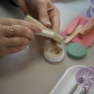 After preparation begins the main stage of manicure. Mineral paste is applied to the dried surface of the nail plate. This can be done with a plastic pusher (if you use P. Shine tools) or with a wand (if you work with Masura).