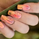 Thanks to a manicure on such a technique, you can successfully cope with such a common problem as unevenness and peeling of fragments of the nail plate. In addition, the treatment can significantly strengthen the nails and significantly increases their immunity to external influences and contact with aggressive media.