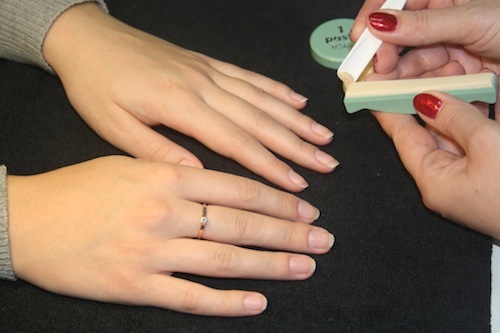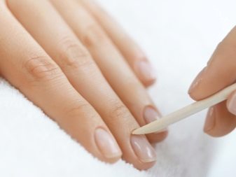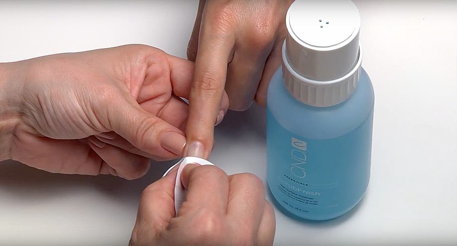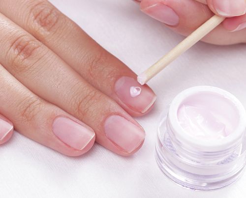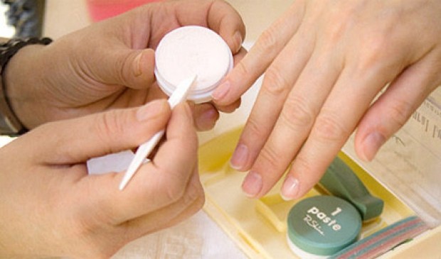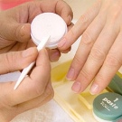 A preparation is applied to the cuticle to soften, wait a couple of minutes, then the cuticle is removed and all the remaining oil is removed.
