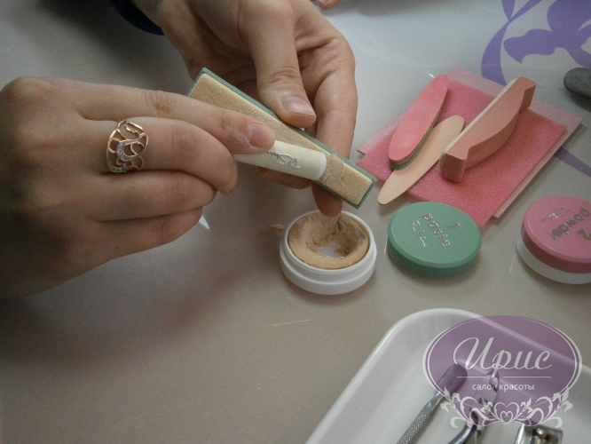 It is very important to evenly distribute the composition over the surface of the polishing unit, and the movements should be clear, one-sided (in the direction from the cuticle to the very tip). The paste fills the nails with nutrients, so that the plates are moistened and aligned.