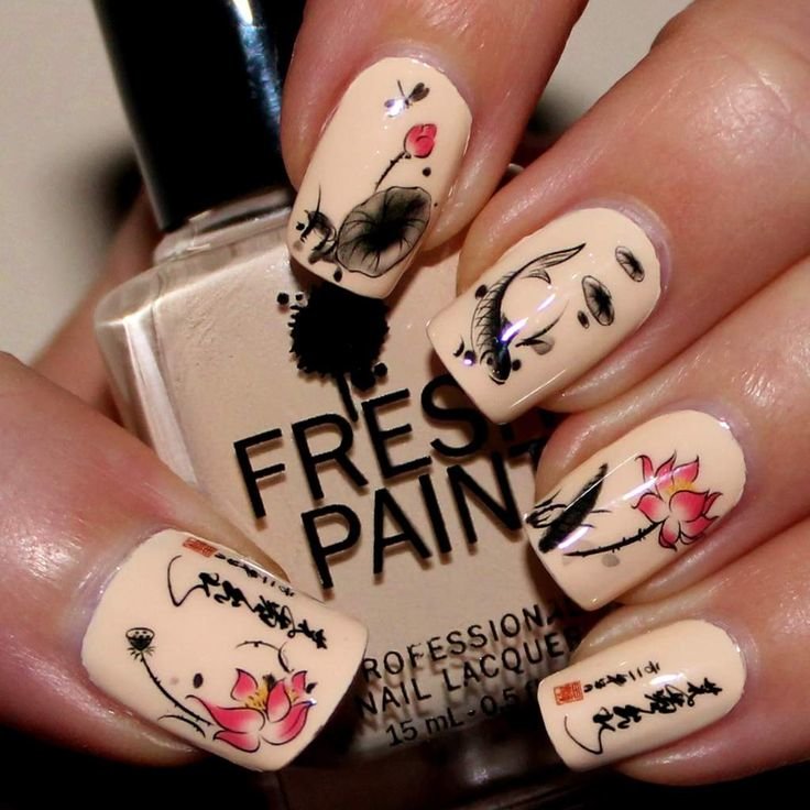 Interesting: women in Japan love to express their individuality through manicure.therefore, in addition to the care procedures, they love to decorate their nails, and the main trend of recent years is the technique in which each nail is decorated in its own way, so you can see stretching, rhinestones, painting, hieroglyphs, and geometric patterns. If you intend to achieve complete immersion in the Japanese style, think about the original nail coating eco-varnish.
