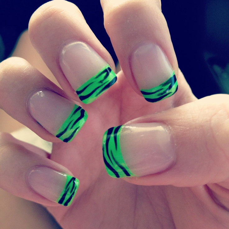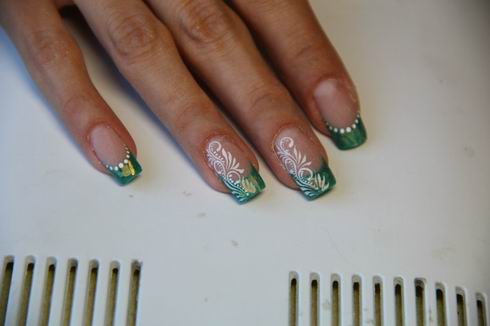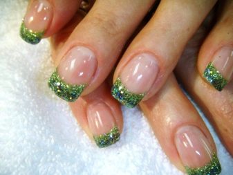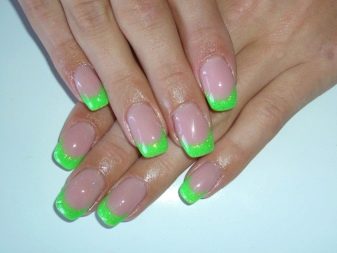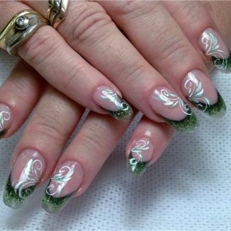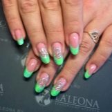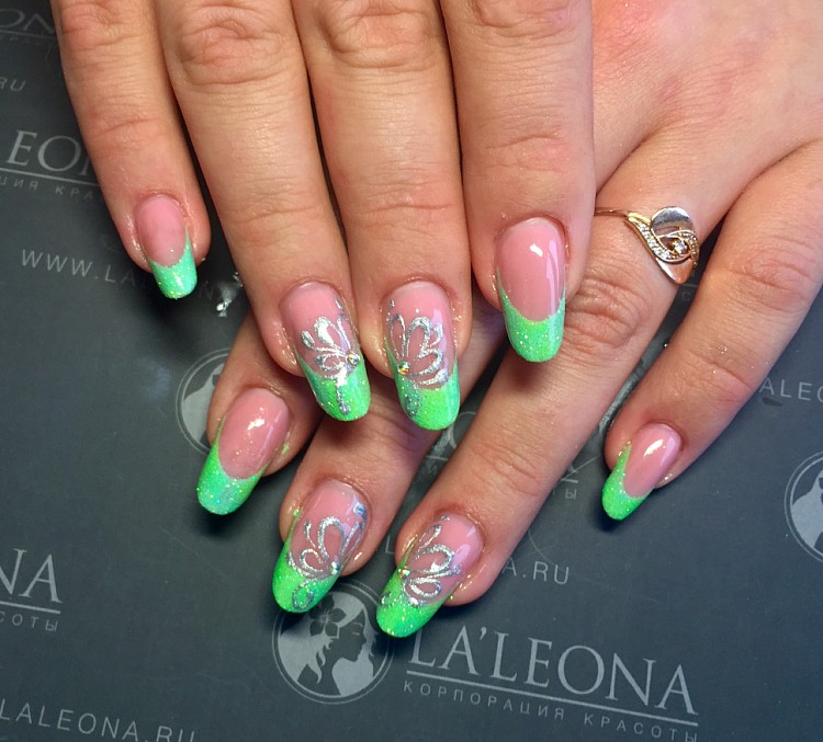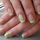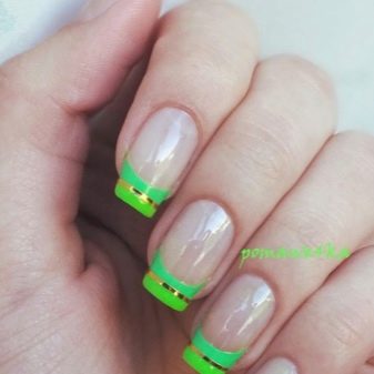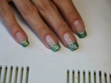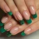 Pretty simple, but at the same time stylish and neat way to design nails. The essence of this design lies in the fact that the main nail plate is painted with clear lacquer, and the proprietary line inherent in the French manicure is covered in green. And depending on your personal preferences, you can choose a variety of shades.