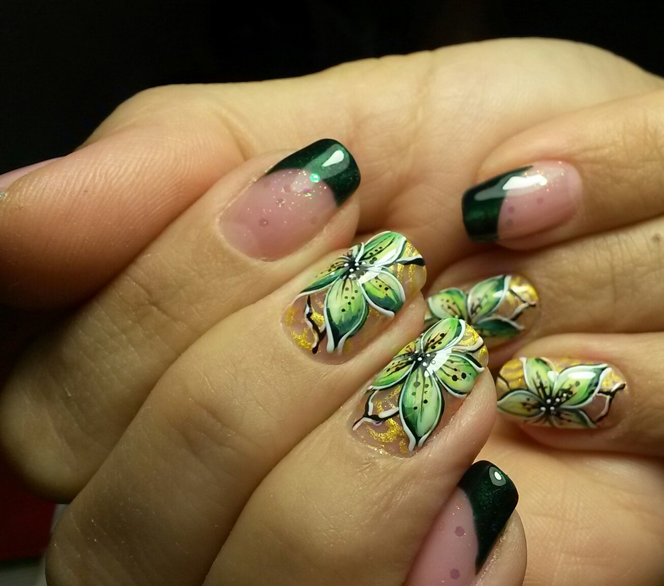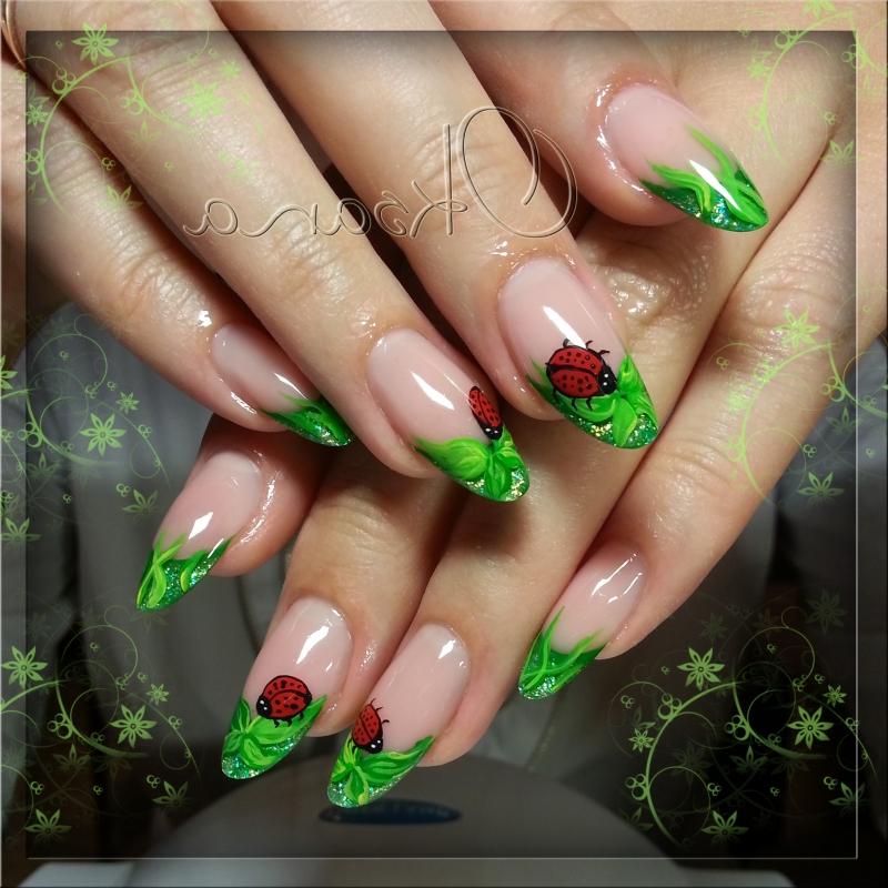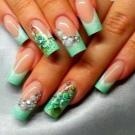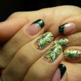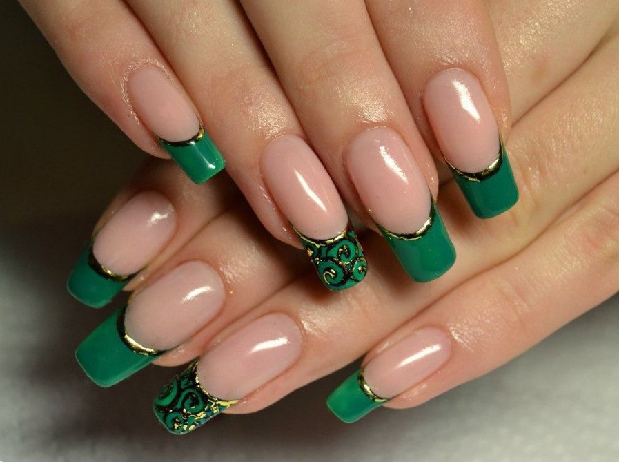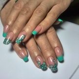 For a start it should be noted that the green color is quite multifaceted. His palette consists of dozens of shades: from light green to the so-called bottle. In connection with such a diversity, it is easy to arrange your nails in the style of a green jacket, and the manicure itself is suitable for any event: from summer vacation at sea to a business meeting.