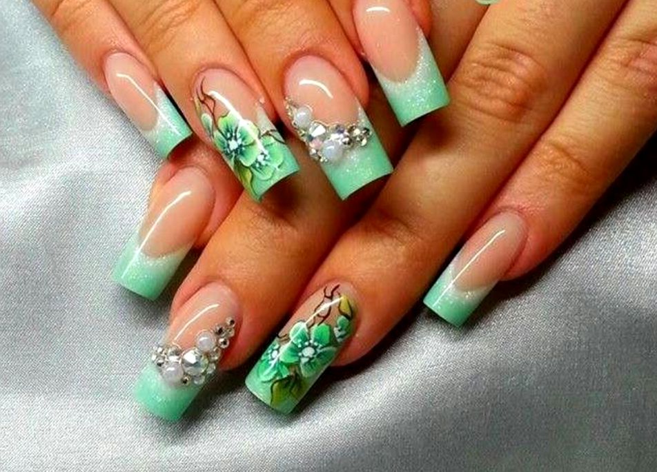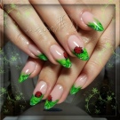 To keep the green jacket on the nails for quite a long time, use a special fixative that should be applied as the final layer of your manicure.