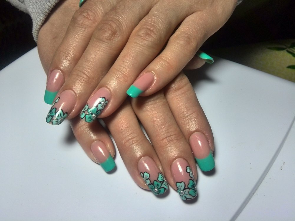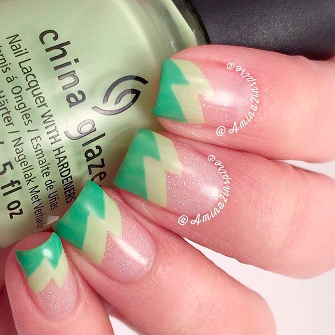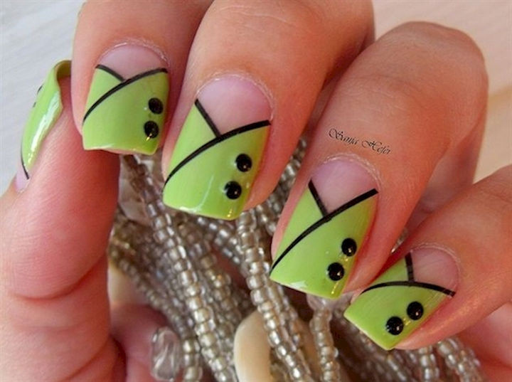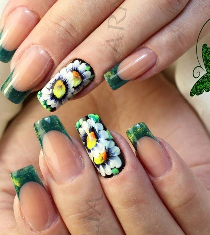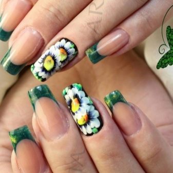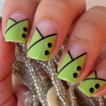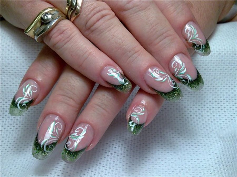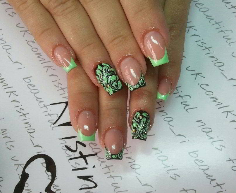This option is suitable for those who want to give some playfulness and freshness to their image. So, it should be noted that the green color is a fairly universal shade with regard to the possibility of combining with other tones, therefore, the methods and options for the application of drawings practically do not know the limitations.