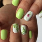- Yellow. This color will be absolutely naturally combined with green. Usually this tandem is used in manicure with fruit and botanical patterns.