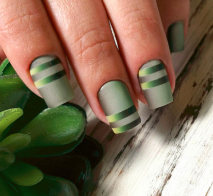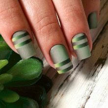 This color also does not go out of fashion for a long time and can be performed both in darker and in light colors. Matte manicure in the style of "khaki" will look great in a sporty look.