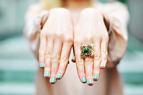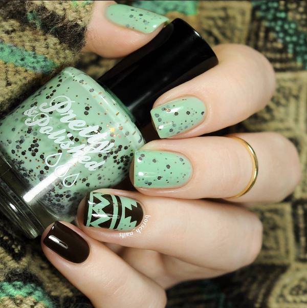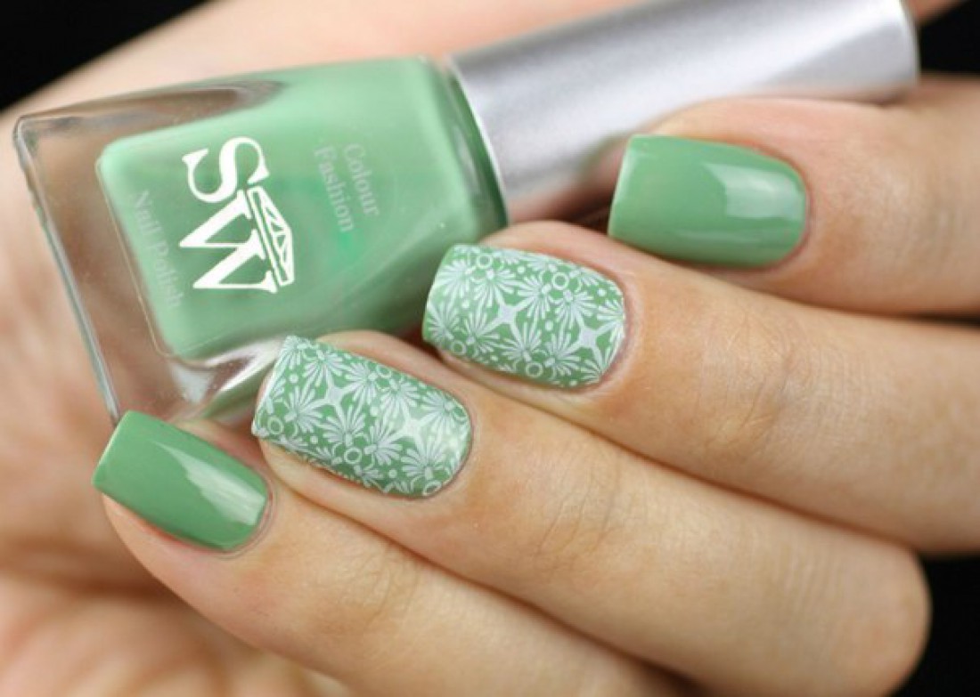 Solid manicure is always in fashion, but you can not stop there and try combinations of colors. These shades will look appropriate with a light green lacquer.