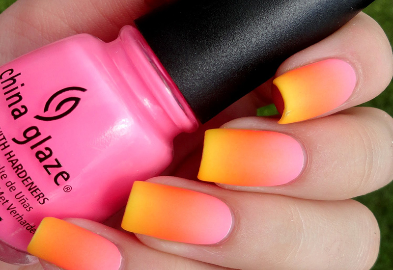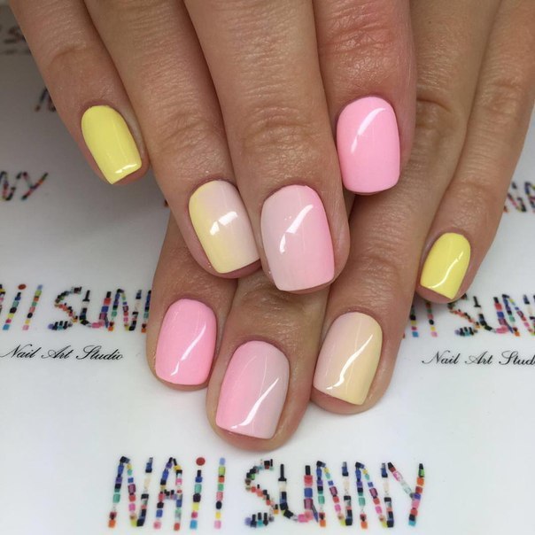 - Pink-yellow gradient. Gradient design for several years does not go out of fashion. This design can be done both horizontally and vertically. With skillful mixing of several colors, you can get a great mono design, in which you should not add anything extra. But an unusual painting will be very useful.