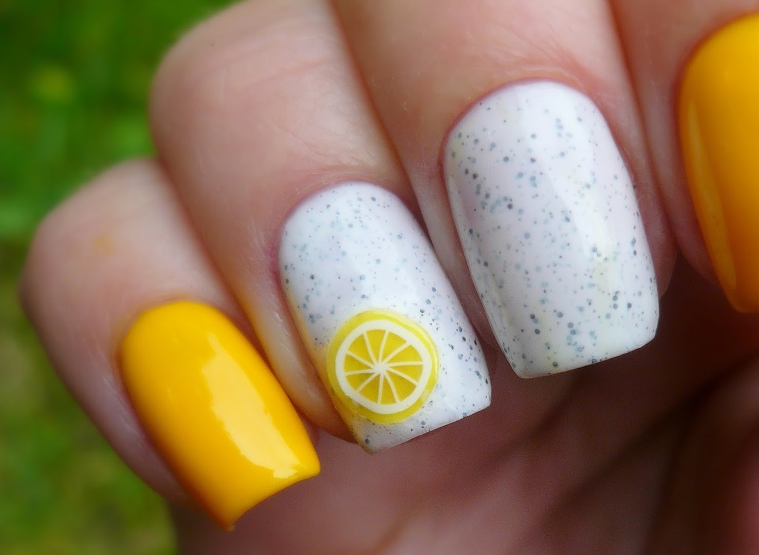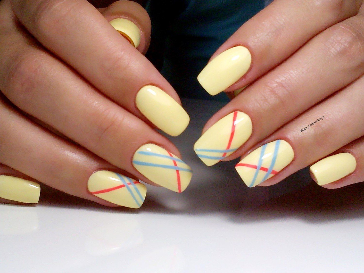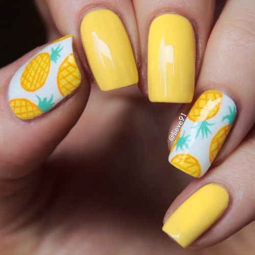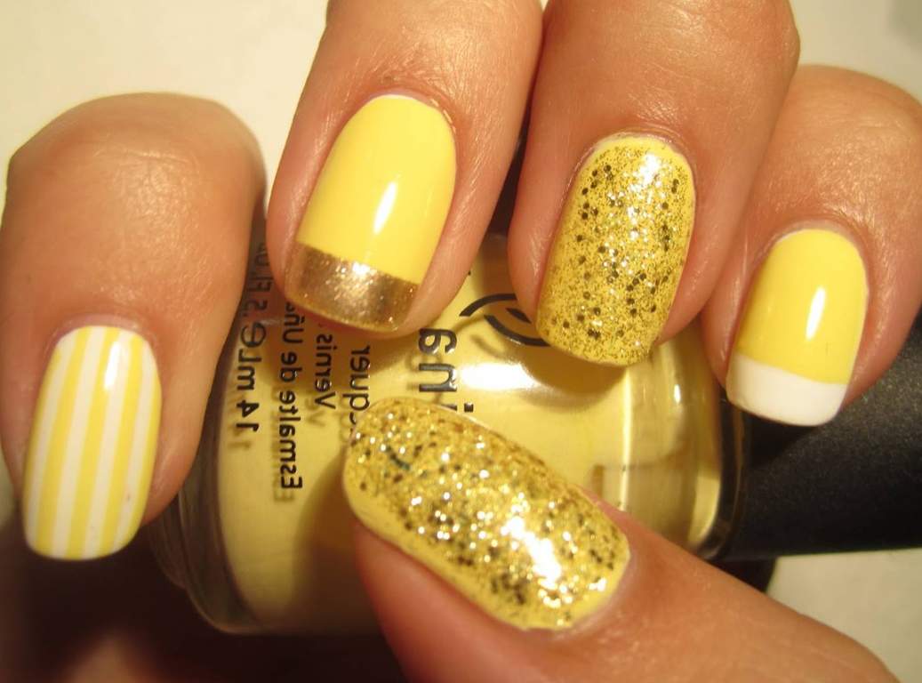 To create a unique and beautiful design on a yellow lacquer, it is very important to take into account its subton. For example, cold shades of yellow as a base color will be perfectly combined with pale blue and light green, but warmer options are best combined with orange, carrot and red.