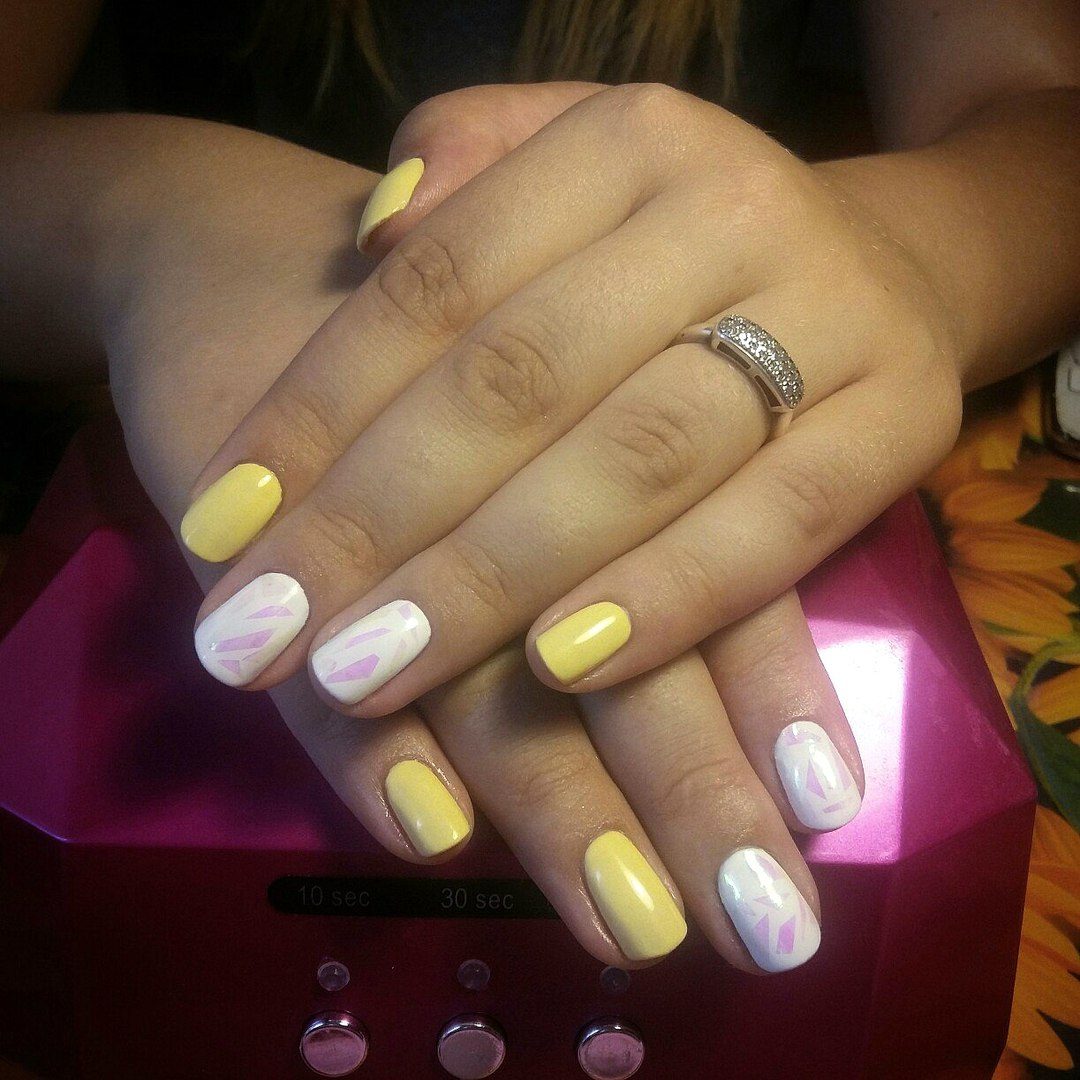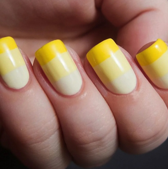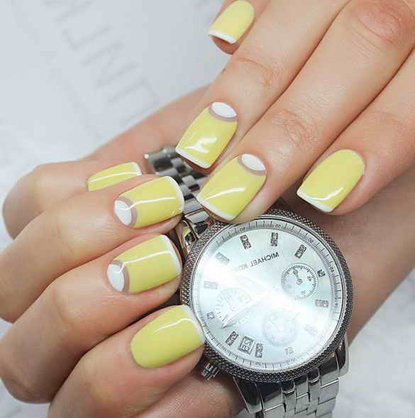 - We also recommend to pay attention to the concise and modern moon manicure using yellow and white colors.Both of these colors perfectly harmonize with each other, creating an impressive duet on the nails, which is suitable for a holiday, and for everyday life.