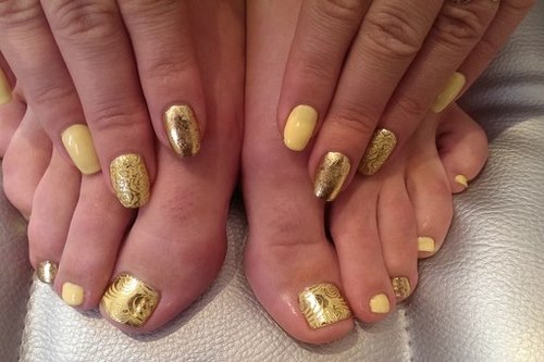 - The casting technique, which in the golden version will look perfectly not a soft yellow gel polish, is also very popular now.