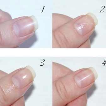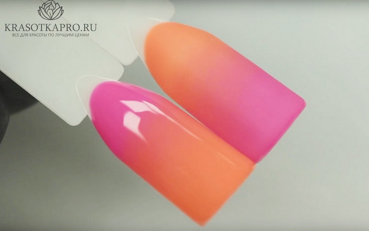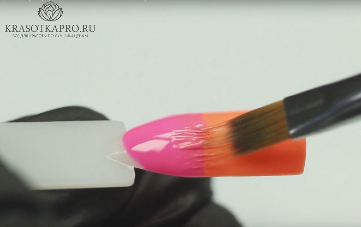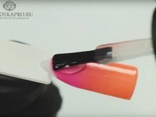 After applying and drying the base, the skin around each nail is smeared with cream. The procedure will help to easily remove unwanted varnish residues. Next is the grading. It runs in the direction from the base to the tips. Accordingly, each subsequent layer is superimposed. The second color is applied at a short distance from the nail base. Here it is necessary to orient yourself and determine the approximate distance depending on the number of tones.