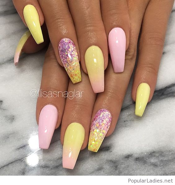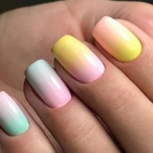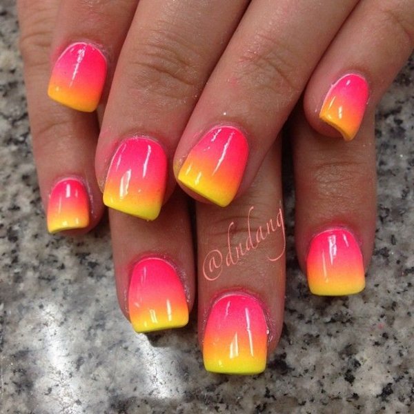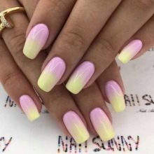 Modern nail design offers fashionable women the most incredible color combinations. This season is especially popular yellow and pink colors in manicure. This trend is also due to new techniques of work. Ombre is one of such fashionable variants.