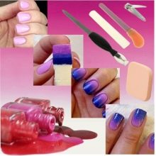 After processing the nails, a base is applied on their surface. It can be either a tonic or a clear or colored lacquer. If the last option is chosen, then you need to use the lightest shade in the palette. In ombre, the tonality of the nails from the light base to the dark ends looks the most impressive. For further work, you will need a gamma of colored varnishes, a thick cream (for hands), a sponge, a brush for decorating (you can use a toothpick), a small palette for mixing, a fixative and cotton wool (tampons).