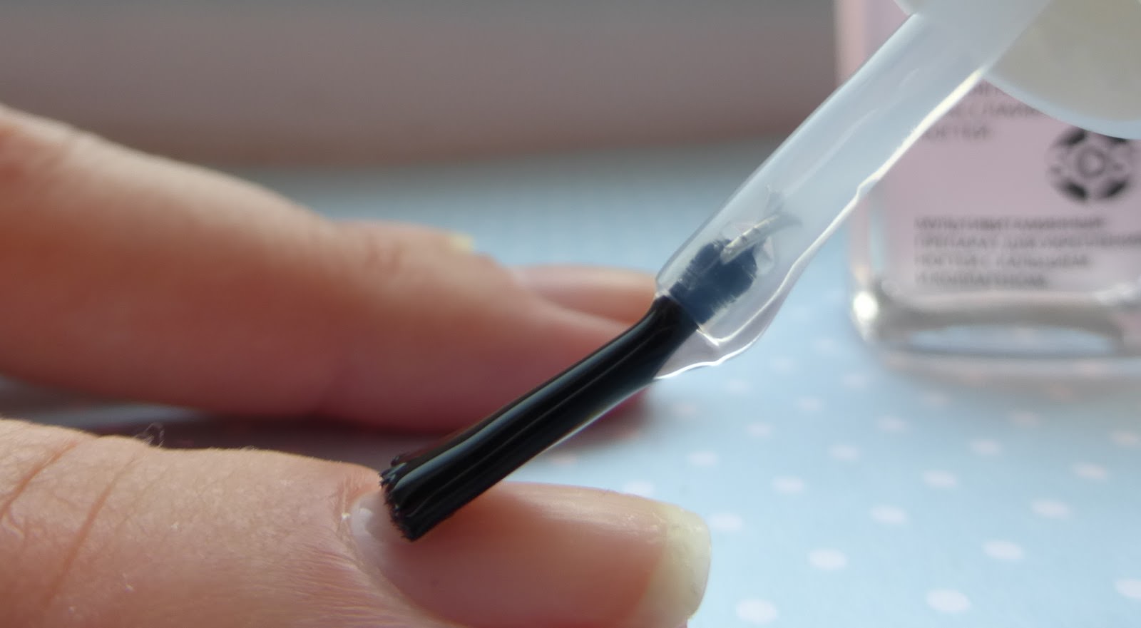It is very important not to press hard on the sponge, as it can absorb more varnish, than put on the nail, or leave deep prints that are difficult then to align with a brush. Application can be repeated several times for a brighter color. For each nail, the composition must be mixed again, as it not only dries quickly, but also partially absorbed into the sponge. Then the color is covered with a fixative, which will help to hide small irregularities from the sponge.