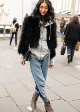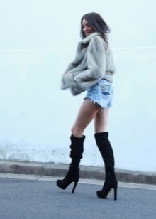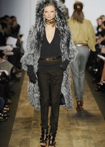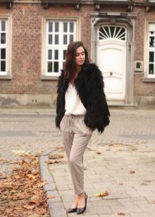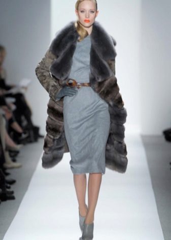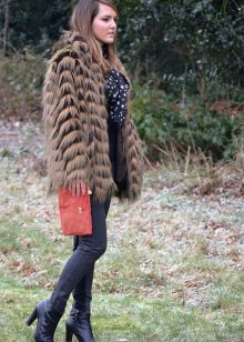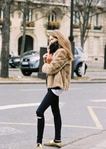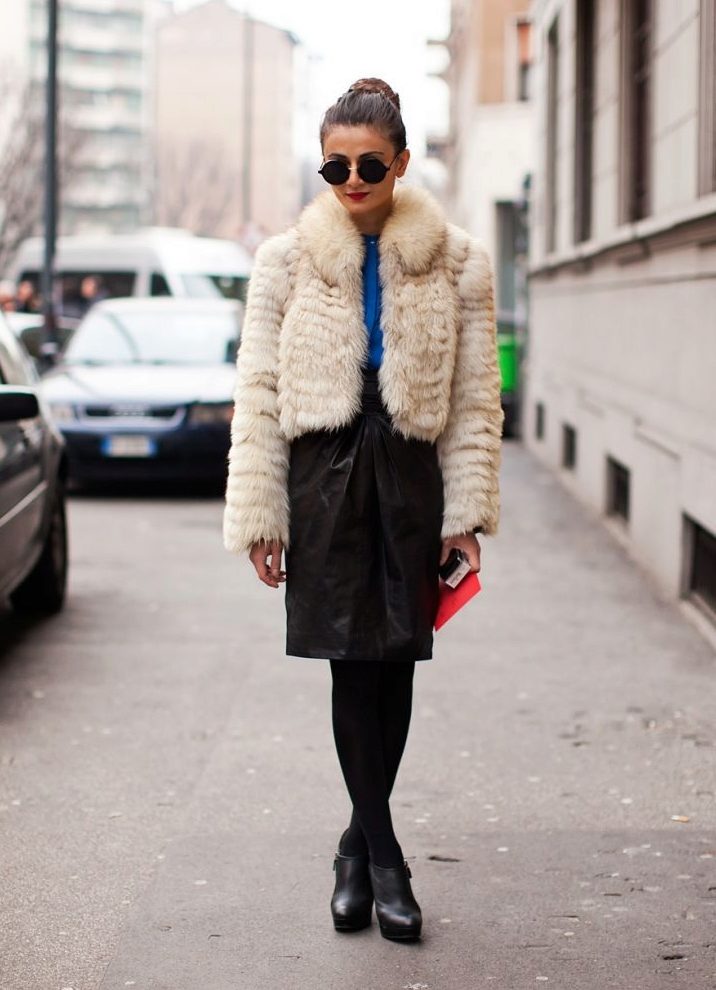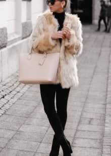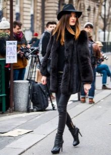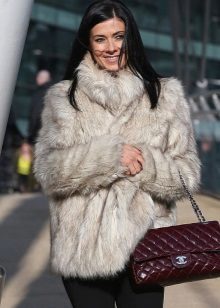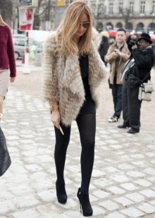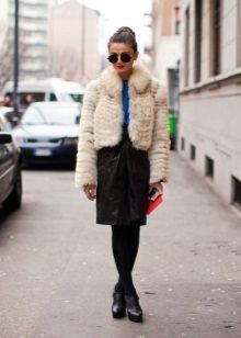 In the case of short manto, it is possible to choose wide trousers that will create a contrast. Dresses can also make a decent batch of fur, but they should be bright and be just below the knee.