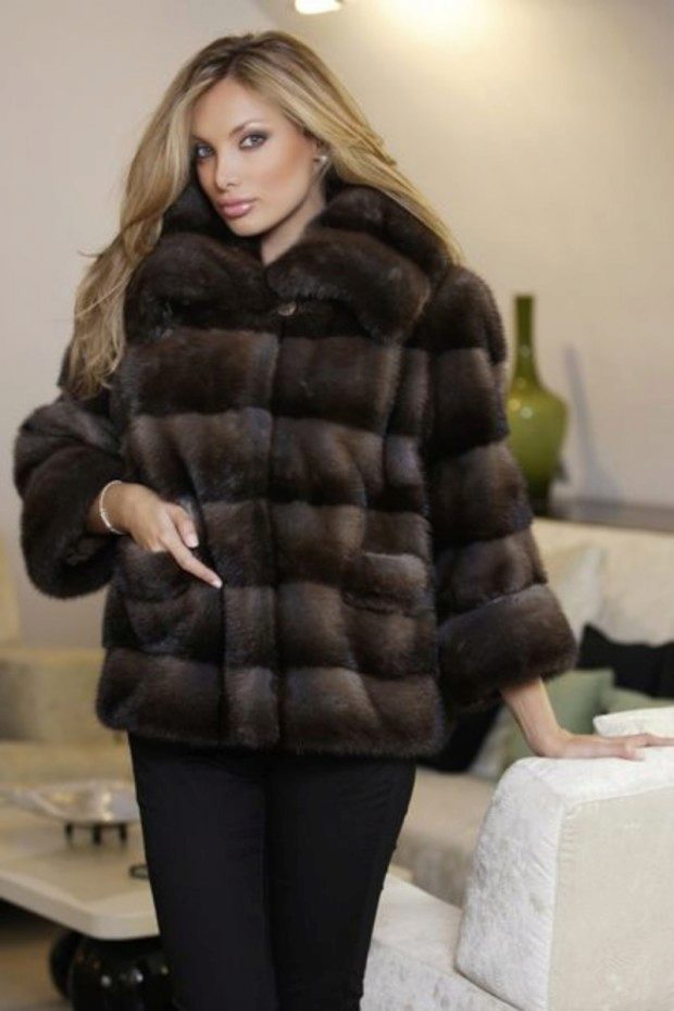 Mink worn for a very long time and tolerates the vagaries of the weather. This fur looks especially luxurious, it sparkles and shimmers. To hide in a fluffy collar is especially pleasant when frosty weather prevails outside. Such a pleasure is not cheap, especially if the coat was sewn from a single mink, and not from patches.