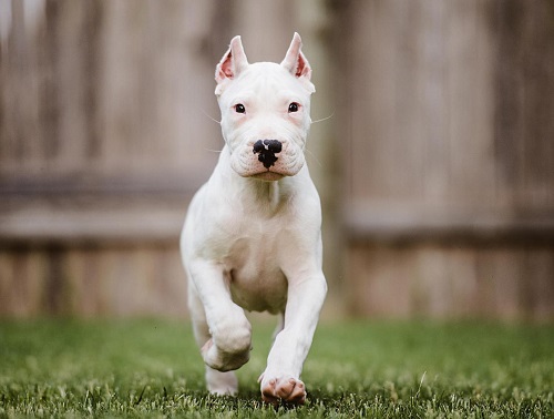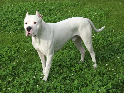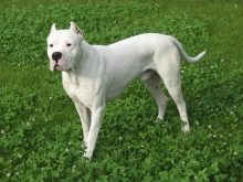 The fur is thick, short and white. The ears of the animal are erect and triangular, they need to be stopped. A special feature of the Argentine mastiff is the versatility of working opportunities. Representatives of this breed are fast-moving and hardy hunters with a strong grip. Despite the courage and well-developed hunting instincts, this dog is cheerful and friendly.