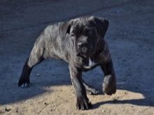 The appearance of the animal is aggressive, serious, strong and reliable. The neck is characterized by massiveness and strength, as well as a neat transition to the head. Puppies have births already at birth. There are triangular hanging ears on the head. Despite the massive physique, it is characterized as embossed and toned. The abdominal part has a taut and elastic structure. The tail of the pet should be docked by 10-15 centimeters. Wool has a pale color, there are tiger prints.