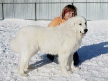 Mountain Mastiff or Pyrenean Mountain Dog. It bears resemblance to polar bears. Despite the awesome appearance, the disposition of the pet is soft and friendly. This dog is characterized by courage, strength, endurance, so he is quite popular around the world. The optimal conditions of detention for a representative of this breed is an aviary and a spacious house adjoining territory. This animal can perform the functions of a shepherd, guard, companion.