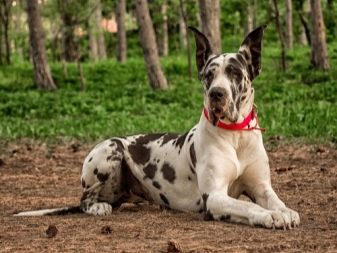 The official name of the breed is the Great Dane. This dog was bred in Germany as a moloss. This stately and large animal has a harmonious constitution and a nearly square body format. The head is large in size with an elongated rectangular muzzle. Brylyam is not inherently excessive drooping. Brown eyes are oval and small in size. Nose is painted black, sometimes black with specks of color. Fit ears high, they are of medium size and the front edge adjacent to the dog cheeks. The long neck is characterized by muscularity, grace and long length.