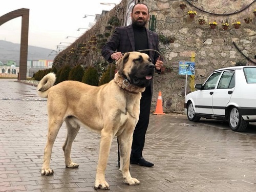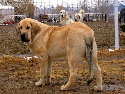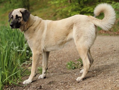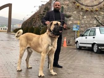 Turkish mastiff or kangal. This Turkish shepherd's dog is distinguished from wolfhound by calmness and hard work. The height of the animal is 0.89 m, and the weight is 69 kilograms. The coat coat color is gray-yellow, gray-brown, brown-yellow. The presence of a black mask on the face is considered mandatory. This animal is harmoniously folded, has a powerful body and a strong build with slender legs. The head is large, with hanging ears. The tail of the pet is long and set high. With its large size, the dog is quite agile and looks very harmonious.