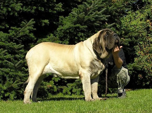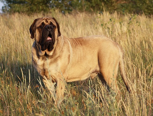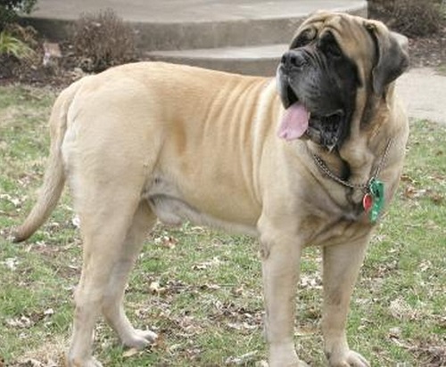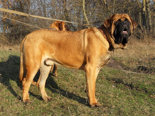 He is English and British Mastiff. The purpose of breeding this animal was the protection of housing, as well as hunting for animals. Ireland is considered the birthplace of this breed. The dog has a short hard fur, painted in peach color or tiger print. On the face of the animal there is black wool. The eyes of the dog are black with a rhombic shape. The tail of the representative of the English Mastiff is set high. The backbone of the dog is powerful and strong. This kind animal has guard qualities and gets along well with children.