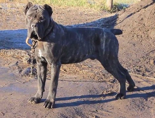 The lifespan of a representative of this breed is about 10 years. The coat color of the Persian Mastiff is usually gray, fawn, and brindle. The head of the dog is large with a broad forehead, the muzzle has an elongated shape and gray lips.The pet face description includes a black lobe, medium sized dark eyes. The dog's neck is short, powerful, strong. The ears are of medium size, they can be cropped.
