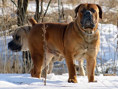The dog is big and strong, it has well-developed musculature. Male reaches height in 0,66 meters, and a bitch - in 0,61 see Body weight is proportional to height and usually ranges from 60 to 90 kilograms. The dog has a large head and body, covered with well-developed muscles. Boerboel - is a smart, manageable and easily trained animal. In a dangerous situation, he is fearless and brave. In order for the animal to be curbed, it needs early education and regular exercise.