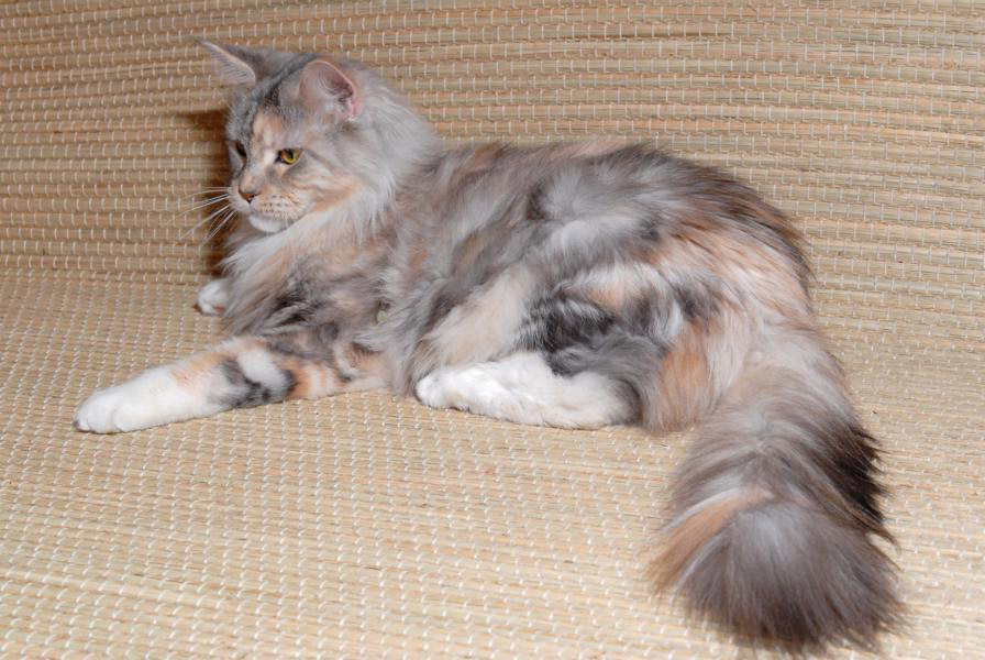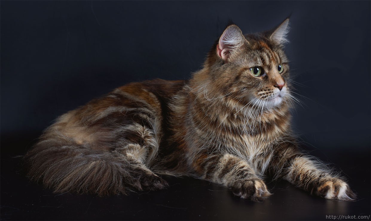 Of course, this is only a general idea of the Maine Coon tortoise colors. There may be other variations of the combination of shades and colors, but in general it is important to understand that the tortoise color implies the presence of spots of different sizes, smoothly turning into cat hair or - in rare cases - a cat.