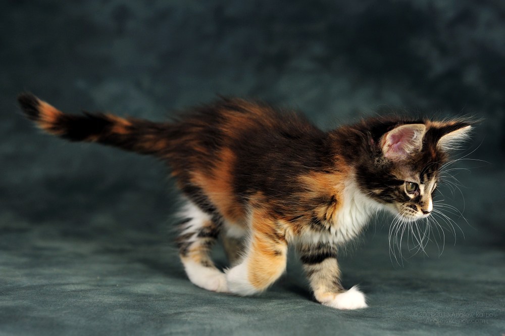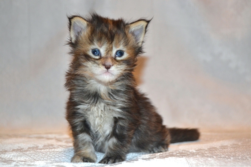 Turtle pattern, in addition to complex genetic factors and processes, also depends on the individual characteristics of the parents, their age and pigmentation of the color of their wool. Predicting the receipt, for example, of a tortoise color with the dominance of blue and milky colors is almost impossible.And it is also obvious that in order to get kittens with such a color it is impossible to knit red and black Maine Coons, even if there are cats or cats with such color in their pedigree, it’s not a fact that their descendants will be like that.